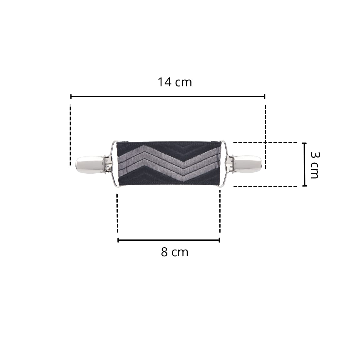 • Spinka do żakietu, zapinka do marynarki – elegancko spięty materiał bez konieczności użycia guzika.